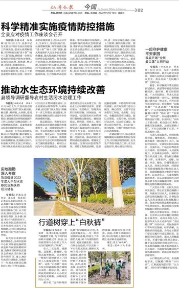 今报讯(今报记者 李冰)12月10日上午,代县长陈志挺带领县直有关部门深入榜头镇、赖店镇、鲤南镇、大济镇、度尾镇,实地察看农村污水管网建设情况,督导推进水环境质量提升工作,以实际行动推动党的二十大精神落地见效。县委常委张志东参加调研督导活动。