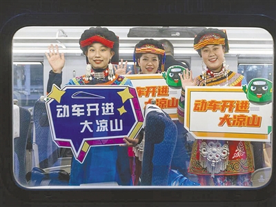 “欢迎乘车,兹莫格尼(吉祥如意)!”崭新动车旁,身着彝族百褶裙、29岁的彝族列车长阿衣布卡带领列车员向旅客们道着祝福。她来自曾经的深度贫困地区——四川省凉山彝族自治州甘洛县。
