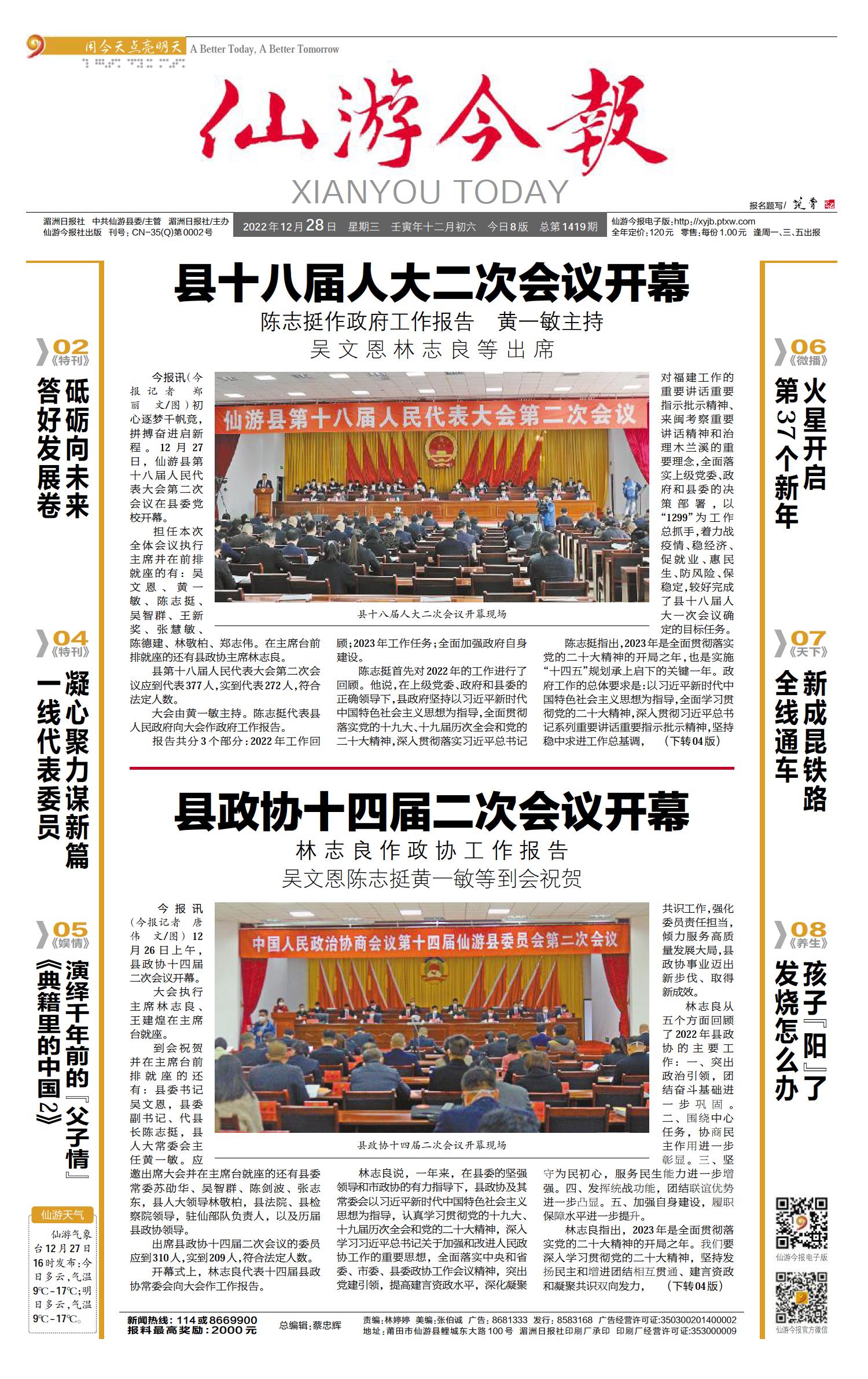 01 导读 02 两会特刊—政府工作报告解读 03 两会特刊—政府工作报告解读 04 两会特刊—一线代表委员心声 05 娱情 06 微播 07 天下 08 养生