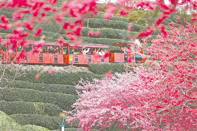 据了解,我省樱花以福建山樱花系列和引进台湾樱花繁育为主,品种繁多,颜色丰富多彩,清新艳丽,目前已相继进入盛花期,正是赏樱的最佳时节。漳平市永福镇5.5万亩高山茶园种植了10余万株樱花,天空之境、樱花小火车等项目吸引了全国各地游客(如图)。