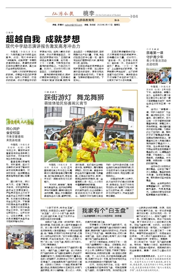 王田还带领着同学们在一次次带有鼓动性的呐喊声中,去唤醒这份力量,这份动力。“奋战每一天,壮志雄心我来也!奋战每一天,我命由我不由天!”最后,一个又一个“勇士”上台高呼他们的梦想,“有梦就要大声说出来”,台下的师生都为他们欢呼。演讲报告会不仅缓解了学生的学习压力,也激发了学习斗志与激情。