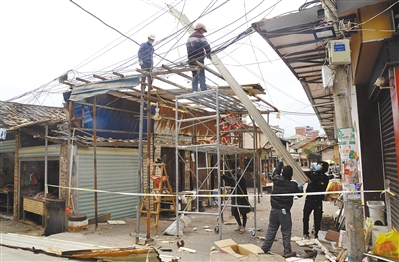 今报讯(今报记者 唐伟 余立凡 文/图)有40余年历史的大济镇集镇区农贸市场,近年来“脏乱堵”现象日益严重。如今,这一“马路市场”现象已成为过去,2月22日,大济镇农贸市场综合整治暨临时农贸市场搬迁项目启动。多台大型机械及几十名施工人员同时进场,开展声势浩大的违章搭盖、占道经营拆除行动。