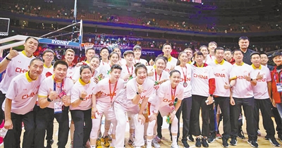 图为2022年10月1日,中国队在2022年女篮世界杯颁奖仪式后。