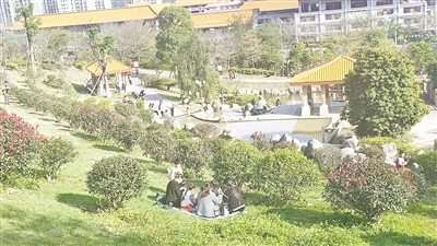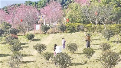 今报讯(今报记者 李冰 文/图)“等闲识得东风面,万紫千红总是春”,春天的仙游红木生态园里,有粉红色的樱花,层层叠叠俏立枝头,也有橙红色的炮仗花,团团簇簇攀援长廊,还有白色的小野花,星星点点装饰大地……繁花绚丽多彩,在蓝天、白云、绿树的映衬下,公园呈现一派如诗如画的美丽景象,吸引了不少游人前来开启一场寻春之旅。他们有的席地而坐,促膝长谈;有的携家带口,搭起帐篷,体验露营;有的肆意奔跑,放飞风筝……在公园里悠闲自在,尽享美好时光!