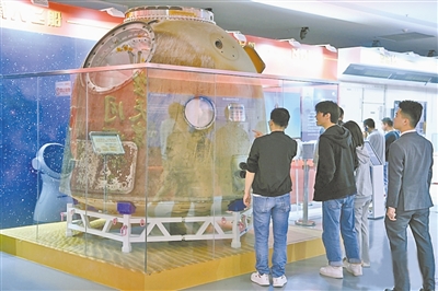 4月3日,福建厦门,民众在诚毅科技探索中心观看神舟十四号返回舱实物。日前,“两岸携行·共望星空”航天科普展在厦门开展,神舟十四号返回舱实物在本次航天科普展上完成全国首次展出。据中新网