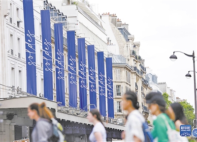 法国2023夏季打折季于当日拉开帷幕。图为6月28日,人们走过法国巴黎街头的打折季广告。