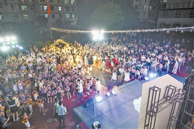 夜幕降临,华灯溢彩,整个幼儿园被装饰得温馨浪漫,孩子们身着节日盛装,牵着爸爸妈妈的手,共赴属于他们的童话之约。当魔法棒点亮夜空,伴随着欢乐的旋律,各个班级的孩子竞相登台、尽情表演,开启了毕业晚会的盛大狂欢。他们在载歌载舞中,诉说对幼儿园、对老师的恋恋不舍,汇报着自己三年来的成长变化,也期待着怀揣梦想拥抱明天。