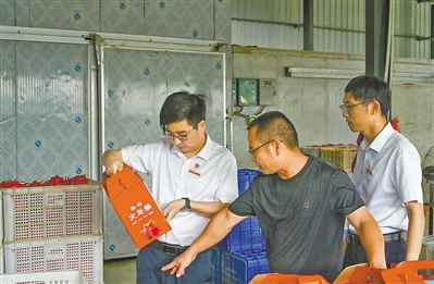 图为度尾支行的金融助理、党员、青年骨干等分组开展走访活动,为果农解决融资,采收、销售等一系列问题。