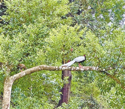 “观鸟基地”处于深山密林中,由于植被丰茂,吸引了白鹇鸟这个珍稀鸟类在此“安家”。