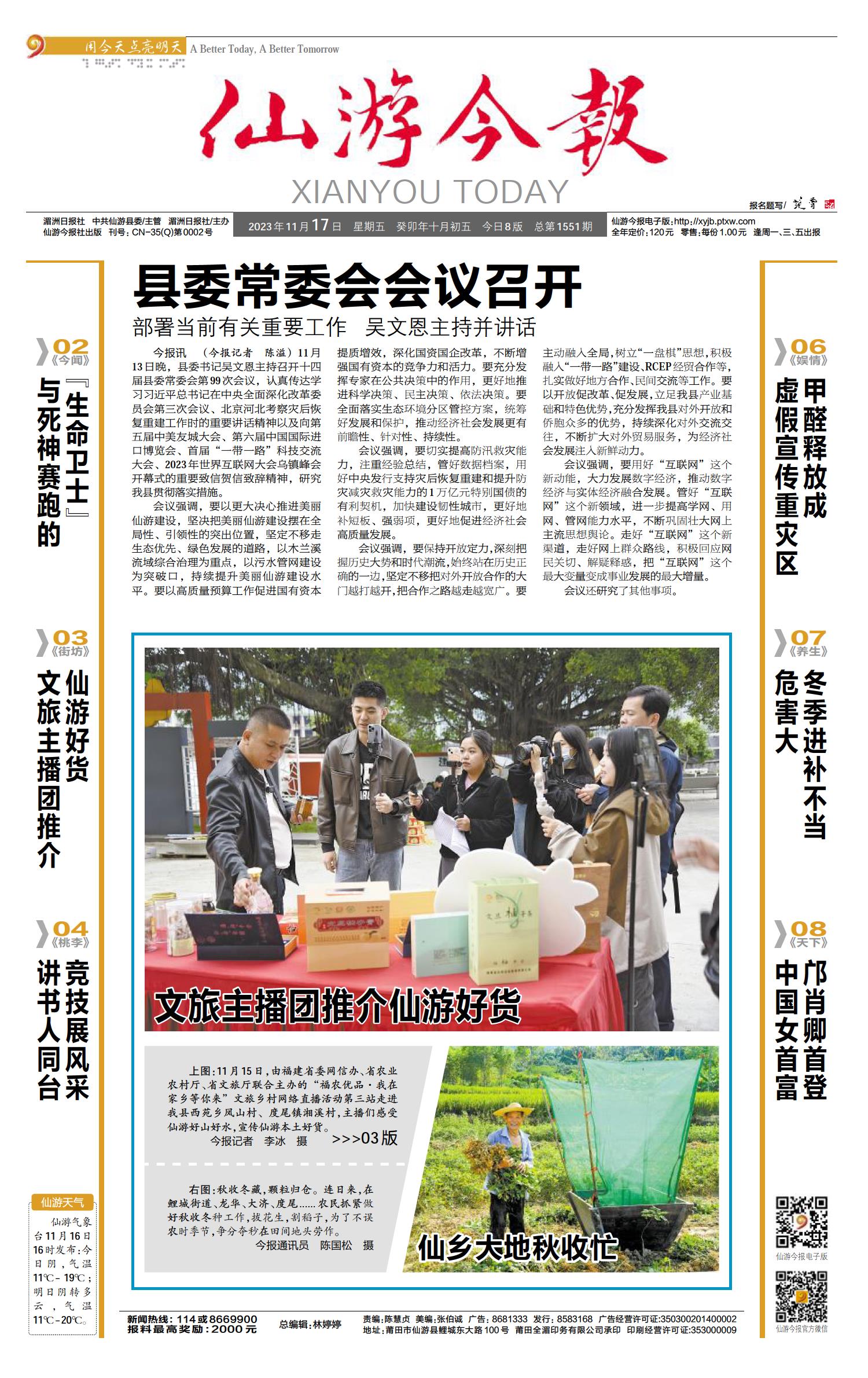 01 导读 02 今闻 03 街坊 04 桃李 05 仙梦 06 微播 07 养生 08 天下