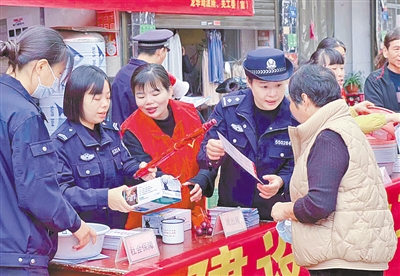 平安摊位话平安。在全县各地人流密集场所,民警通过“摆摊设点”,用接地气的形式,通俗易懂的语言进行平安宣传推广,各摆摊活动现场,民警通过积极开展平安建设“三率”宣传、反诈和普法宣传,进一步扩大宣传覆盖面,警民互动,欢乐满满。