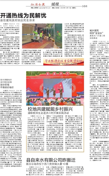 近年来,我县高质量推进城乡供水一体化建设,努力实现供水乡镇全覆盖,开启城乡供水“同质同网”新时代,通过加快新、改、扩建水厂建设,通过一、二水厂连网供水及供水管网的进一步延伸辐射,解决城区的用水紧张问题和农村饮水不安全人口的饮水问题,提高水资源统筹调配能力,保障供水水质。