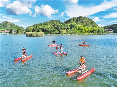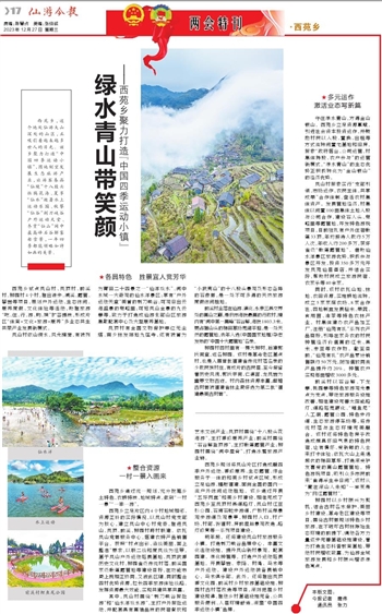 西苑乡试点凤山村、凤顶村、前溪村、柳园村4个村,推出徒步、溯溪、露营、攀岩等项目,策划户外运动、生态休闲、康养度假、文化体验等活动,助推旅游“吃、住、行、游、购、娱”扩容提质,形成片区“体育+文化+旅游+康养”多业态共生共荣产业发展新模式。