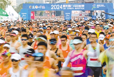 厦门马拉松赛是世界田联白金标赛事和中国马拉松金标赛事。今年赛事仅设置全程马拉松项目,共有3万名跑者参赛,预报名人数超13.6万,创下历史新高。