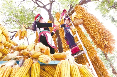 1月6日,云南省弥勒市西三镇马龙社区彝族群众晾晒丰收玉米“丰景”如画。近年来,群众把玉米晾晒室外,通风透气易干易储,晾晒玉米为乡村增添一道靓丽风景线。