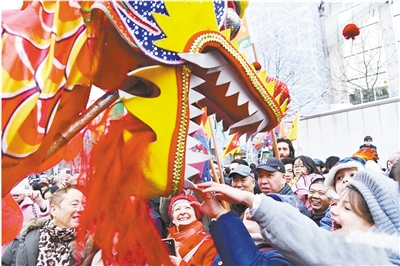 当地时间2月4日,法国巴黎香榭丽舍大街新春舞龙活动举行,迎接龙年春节,向当地民众送上新春祝福。 中国新闻网