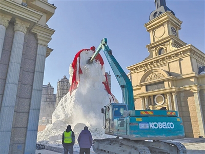 当日,许多得知大雪人即将被拆除的市民游客提前来到,和大雪人进行最后的合影。“大雪人太治愈了”“不想说再见”“大雪人,明年见”……伴随着铲车的启动,市民游客依依不舍地向大雪人挥手,向这个陪伴了40余天的朋友道别。