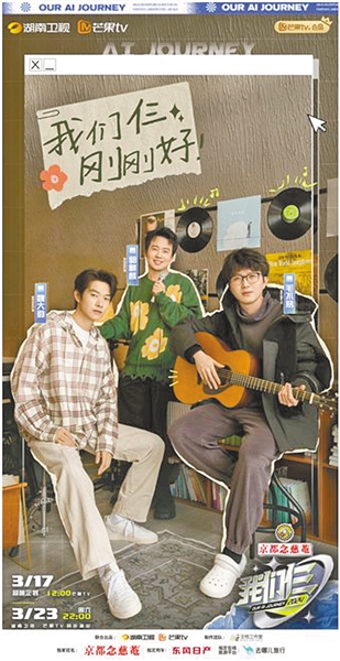 旅行探索真人秀节目《我们仨》3月23日在湖南卫视和芒果TV首播,郭麒麟、毛不易、魏大勋三位好友集结长白山,和湖南广电发布的首个AI导演爱芒共同开启了《我们仨》之旅的第一程。