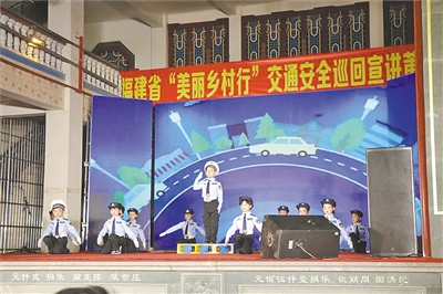 今报讯(今报记者 唐伟 文/图)3月28日晚,由省公安厅交警总队主办,市公安局交警支队、县公安局交警大队和鲤城街道共同承办的福建省“美丽乡村行”交通安全巡回宣讲活动,在鲤城街道南桥社区五帝庙戏台举行。精彩的表演、接地气的内容吸引了众多群众前来围观。