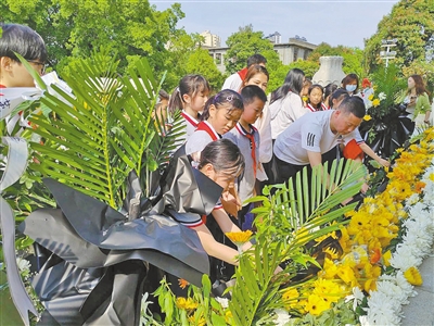 又到一年清明时,缅怀先烈励斗志。图为3月29日,莆田学院附属实验小学师生前往仙游县革命烈士陵园祭扫并敬献花篮。