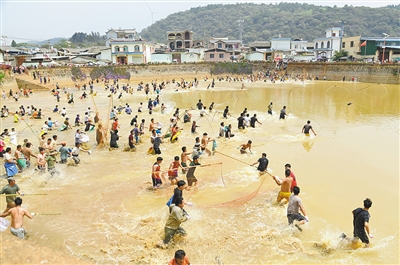 3月30日,云南省红河哈尼族彝族自治州弥勒市巡检司镇下高甸村组织彝族群众利用扳罾传统捕鱼,现场气氛活跃,别具一格的捕鱼活动让群众乐在其中,促进乡村旅游发展。