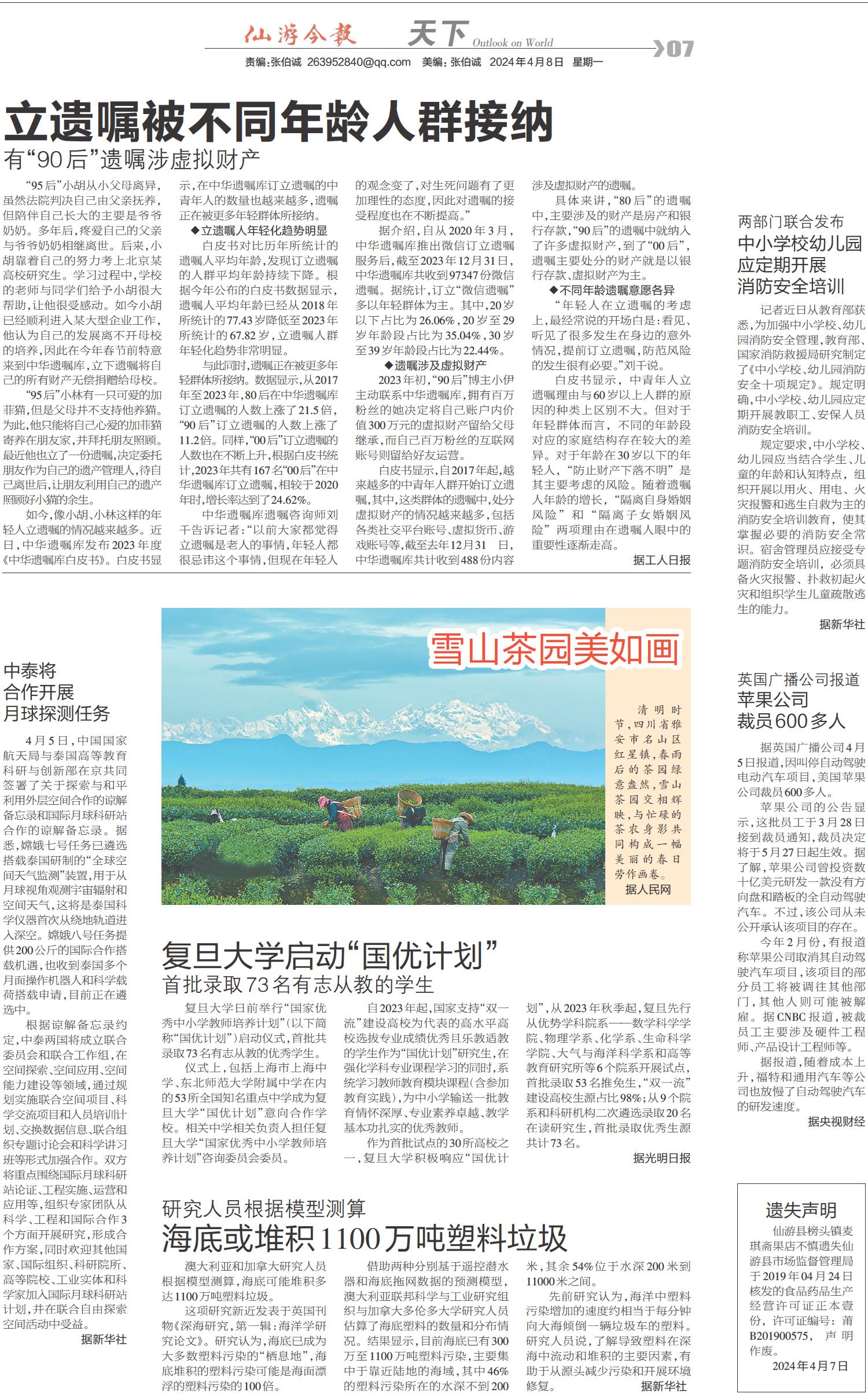 01 导读 02 今闻 03 街坊 04 金融 05 娱情 06 养生 07 天下 08 微播