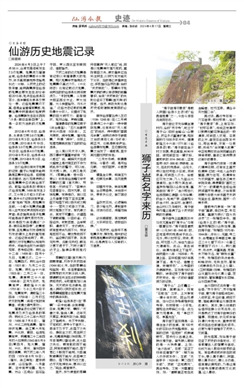 纵观历史,仙游并不是地震多发、强发地,相关的记载既是地震学研究的重要资料,也是满足今人好奇的人文信息。