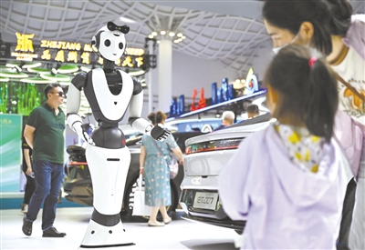 正在海南举行的第四届消博会首创全岛办展模式,汇聚了71个国家和地区的超4000个消费品牌,全球“尖”货同台竞技。环顾各大展区,全球“新、奇、特”消费品齐聚,品类丰富、包罗万象,让“共创美好生活”变得可触可感。图为4月15日,湖北展馆的一台AI人形智能服务机器人在与观众互动。 新华社