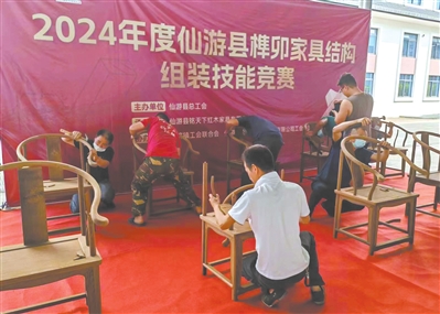 4月28日,在福建云敦服饰有限公司,一场主题为“缝制之美展衣彩”职业技能竞赛正在如火如荼上演,竞赛分为“机台使用前开机准备”“围裙缝制”两个项目。4月29日,在仙游县铭天下红木家具有限公司,主办方开展榫卯结构家具组装项目职业技能竞赛。