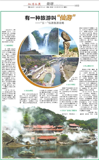 人间五月天,浅夏胜春烟。在“五一”小长假来临之际,今报特推出“有一种旅游叫仙游”五一玩转指南,邀君共享山水田园、国潮古韵…… 仙游醉美五月,等你来探索、去开启!