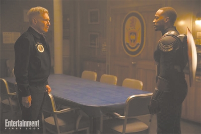 北京时间4月29日消息,据外国媒体报道,漫威新片《美国队长4》首曝剧照,安东尼·麦凯版美队和哈里森·福特版罗斯对峙。
