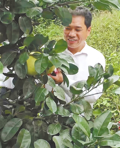 金黄饱满、清香四溢、酸甜可口……度尾文旦柚凭借其独特的口感和卓越的品质,成为畅销全国各地的名优农特产。作为当地农业支柱产业,度尾镇涌现出一批批致力产业创新和发展的带头人,刘坤泳就是其中的代表人物(如图)。