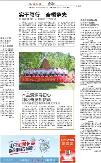 记者了解到,仙游农商银行将对照全年目标抓发展,特别是在抓好资金组织工作上精准发力。做好柜面服务,巩固营销主阵地;丰富存款产品,激发业务新活力;加强渠道融合,构筑发展新格局。在加快有效信贷投放上不遗余力,推进信贷管理机制创新;加快助学贷款受理进度;积极对接“白名单”企业贷款;做实信贷档案管理。同时对焦风险防控再加力,切实做到持续抓好信用风险化解、分析成因推进分类清收、加快抵押物拍卖处置,为推动仙游农商银行高质量发展作出新的贡献。