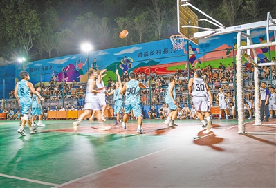左图:7月16日晚,龙华镇乡村篮球赛在金溪村灯光球场开战。来自我县8支民间篮球队近150位篮球健儿,在这里开启一场关于速度与激情的篮球“盛宴”。