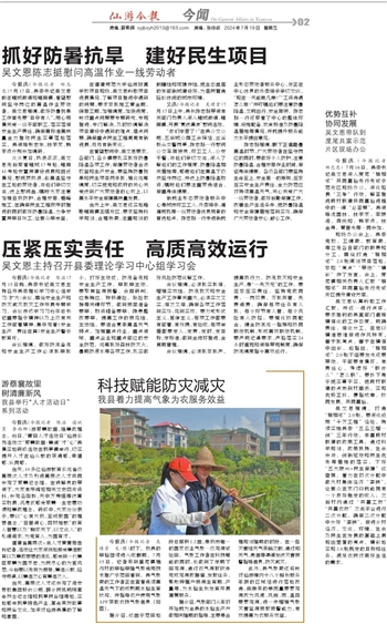 会议强调,做好防汛备汛和安全生产工作必须抓早抓小,打好主动仗。防汛备汛和安全生产工作,早抓早主动。要聚焦监测预警、会商研判、应急响应、转移避险、抢险救援等关键环节,做到预案准备要早、物资储备要早、隐患整改要早,提高工作的预见性、主动性。要结合夏季高温天气特点,加强重点行业、重点领域、重点企业和重点部位的安全防范,统筹抓好森林防灭火、暑期防溺水等各项工作,扎实做好风险防范化解工作。