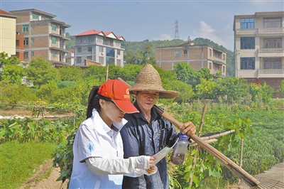 今报讯(今报记者 吴瑾莹 文/图)时下,我县的早稻陆续进入收割期。7月15日,记者来到盖尾镇瑞沟村的早稻早播气象适用技术推广示范田看到,县气象局的工作者正在查看连续高温天气下的成熟期水稻生育状况,并指导农户使用气象APP获取农技气象信息(如图)。