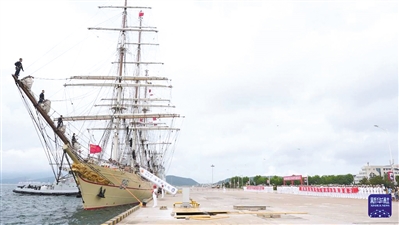 中国海军首艘风帆训练舰“破浪”号20日从大连某军港解缆起航,搭载海军大连舰艇学院的学员和官兵,进行远海实习训练,并将访问越南、印度尼西亚、斯里兰卡、新加坡等国家,技术停靠香港。图为8月20日,中国海军首艘风帆训练舰“破浪”号在大连某军港准备起航(视频截图)。 据新华社