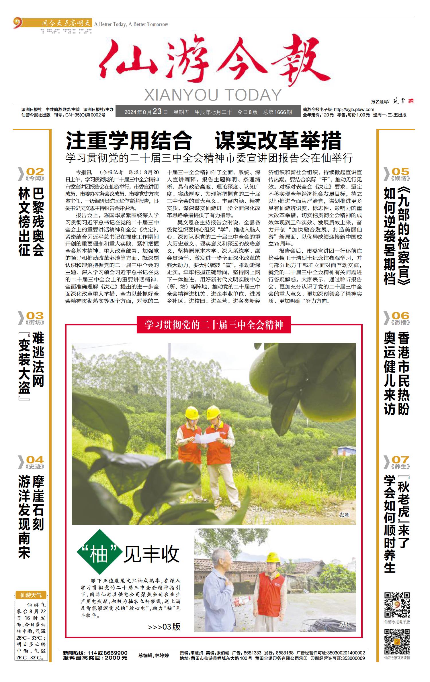 01 导读 02 今闻 03 街坊 04 史迹 05 娱情 06 微播 07 养生 08 天下
