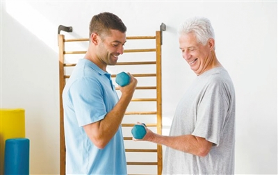 老年人力量练习重在循序渐进,从极低到低强度练习,多重复次数(如10~15次/组)。可以从练习1组开始,适应一段时间后再增加强度,重复8~12次/组,练习2~3组,组间休息2~3分钟。