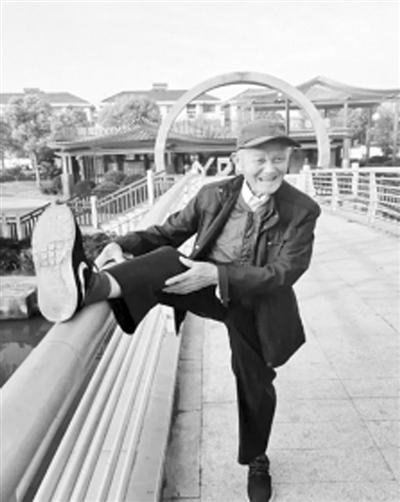 令人惊讶的是,俞登泉在中年时期曾患过肺癌,经过手术治疗后得以康复。经常有人问他:“您身体这么棒,有什么养生经验吗?”俞登泉总是笑呵呵地说:“我没有什么养生之道,我认为只要多活动,身体就会越来越健康。”俞登泉介绍,他坚持每天早上4点半起床,5点左右骑上三轮车到小区周围转悠,每天骑行5公里以上,步行不少于5000步。之后,他会到滨河公园锻炼20分钟,在钢架桥上搁腿、扭身、弯腰、扩胸、伸展、揉腹,用自创的这套运动方式唤醒身体的每个部位。很多人听说他的年纪后,都跑来围观,并跟着模仿做搁腿动作。每一次,他总是能轻松地抬起腿,再把腿搁上桥的栏杆,很多围观者都自愧不如。