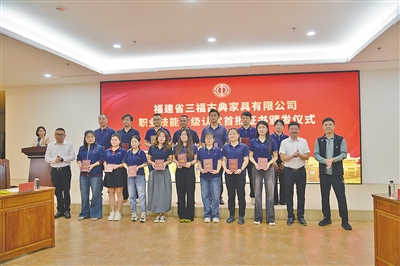 会上,与会领导为37名通过考核获得工艺品雕刻工高级技工证书的员工颁发职业技能等级证书(如图)。随后,职工方和企业方代表围绕能级工资的标准、评定方法、调整机制等方面进行协商座谈,重点讨论员工学历提升奖励、职级晋升补贴、外部技能竞赛奖励机制等。双方将进一步完善协议内容,明确补贴标准,并按照相关程序进行签署,同时报送劳动行政主管部门审查后实施。