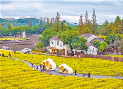 金秋时节,华夏大地层林尽染,诗意斑斓。图为10月26日,游客在浙江省宁波市镇海区九龙湖镇九龙湖村欣赏盛开的硫华菊。