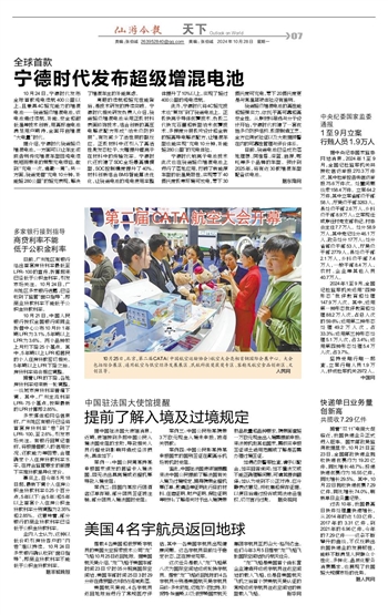 搭载4名美国和俄罗斯宇航员的美国太空探索技术公司“龙”飞船10月25日返回地球。据美国航天局介绍,“龙”飞船于美国东部时间23日17时05分脱离国际空间站,美国东部时间25日3时29分许在佛罗里达州附近海域溅落。