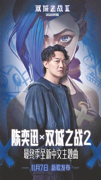 11月4日,《英雄联盟:双城之战》动画官方宣布,歌手陈奕迅将与《双城之战》再度携手,带来《双城之战》动画第二季全新中文主题曲,预计将在2024年11月7日正式发布。