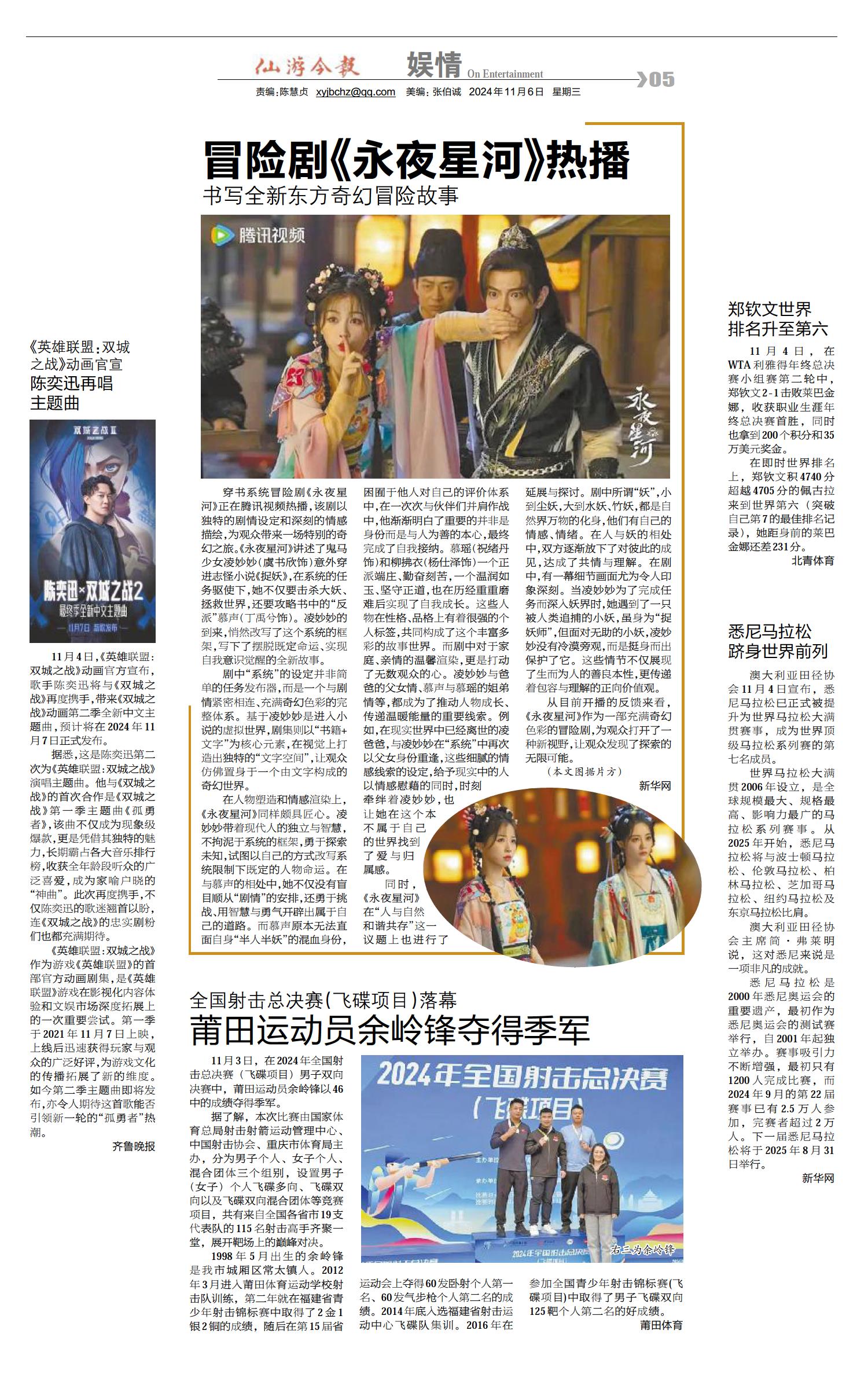 郑钦文世界排名升至第六