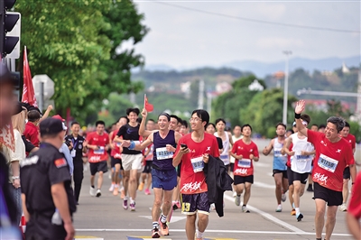 跑者们在赛道上一往无前,赛道旁聚集着热情好客的仙游市民,为跑者加油助威,用激情点燃赛道。一张张笑脸,一声声呐喊,让整个城市沸腾雀跃。