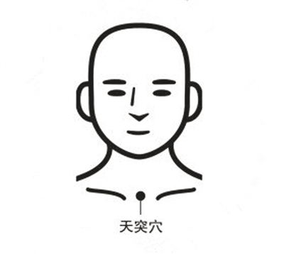 按摩方法:可用搓热的拇指按压揉搓天突穴,或用烤热的生姜片贴敷搓揉该穴位。