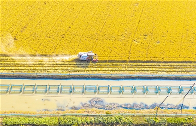 12月1日,江苏省宿迁市泗洪县临淮镇稻蟹共作基地迎来大丰收,养殖户们正抓住当前晴好天气,一边捕捞螃蟹暂养,一边抢收优质水稻。金色的水稻与碧绿的湖水构成了一幅美丽的生态画卷。