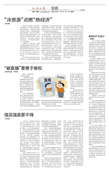 中国消费者协会发布的2024年上半年消费维权舆情热点显示,“被直播”已成为消费者投诉的“重灾区”。无论从呵护网络生态的层面,还是从保护公民权益的角度,对于“被直播”乱象,都应勇于维权,不能选择忍气吞声。