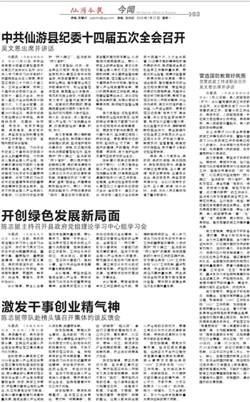 陈志挺强调,要激发干事热情,坚决扛起发展重担。仙游正处于全方位推动绿色高质量发展的关键期。榜头镇要紧紧围绕县委“1299”工作抓手和“1021”工作机制,主动适应新形势、迎接新挑战,大力提振干部干事创业的精气神,尽心尽力、尽职尽责,力求实现更多“从0到1”的突破,既为一域增光、又为全局添彩,努力为仙游绿色高质量发展作出新的更大贡献。